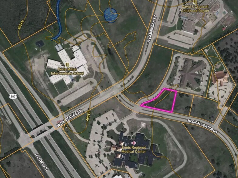 Prime commercial opportunity in one of Ennis’ fastest-growing corridors, with sites available from 1–3.9 acres along highly visible Hwy 287. Ideally positioned at Medical Center Drive and directly adjacent to Ennis Regional Medical Center, this location benefits from steady daily traffic generated by medical staff, patients, and surrounding service providers. The area is supported by nearby schools, established neighborhoods, and continued residential growth, creating strong demand for retail, medical, and service-based businesses. Convenient access to Hwy 287 provides a direct route to Waxahachie and the greater DFW metroplex, offering both local and regional exposure. Zoned CC (Corridor Commercial), these tracts allow for a wide range of development including medical office, retail, restaurant, and professional services—making this an ideal location for businesses looking to position themselves in a high-traffic, growth-driven area. A rare opportunity to secure commercial land in a corridor anchored by healthcare and poised for continued expansion.
