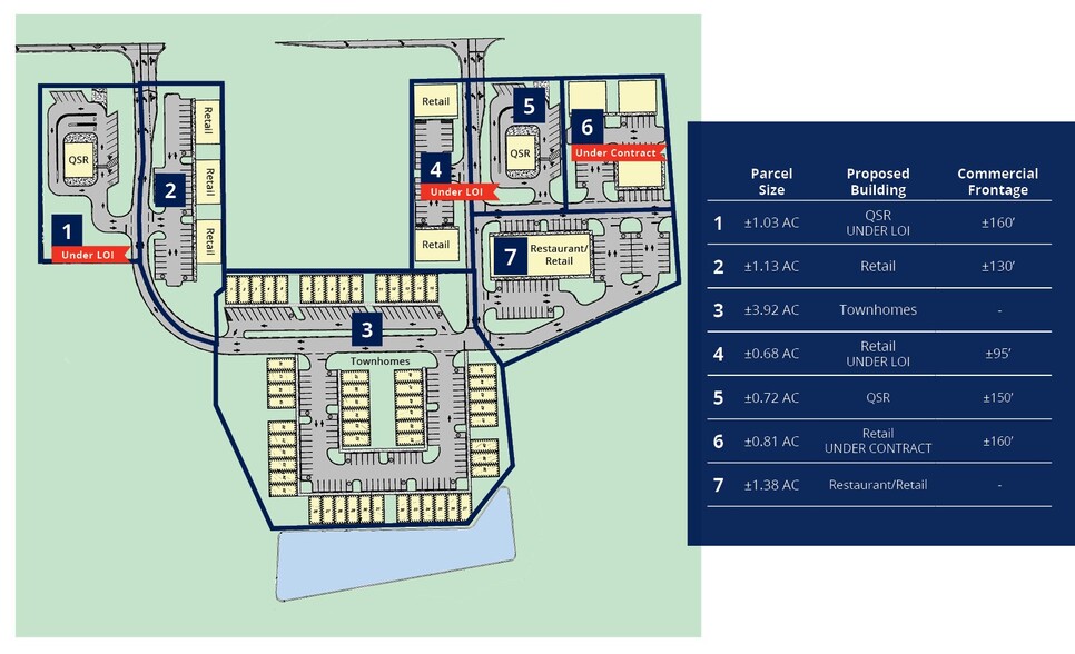 • Parcelles à usage mixte disponibles sur la route 67 • Les parcelles disponibles varient de ±0,68 à 3,92 acres • Les utilisations possibles comprennent les restaurants, les commerces de détail à locataires multiples, les services d'huile rapide, les cabinets médicaux, etc. • Les sites seront livrés avec des routes d'accès et de rétention des eaux pluviales et hors site