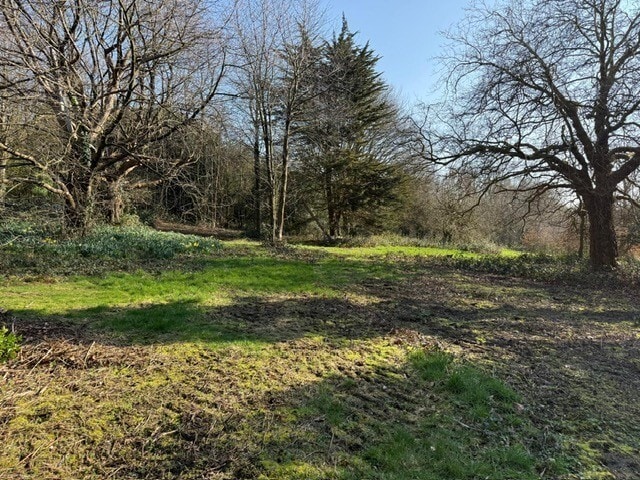 The land is irregular in shape with a mix of woodland, grassed areas and shrubland, and is accessed via the established entrance to Woolton Manor Care Home.