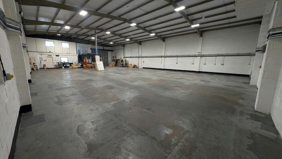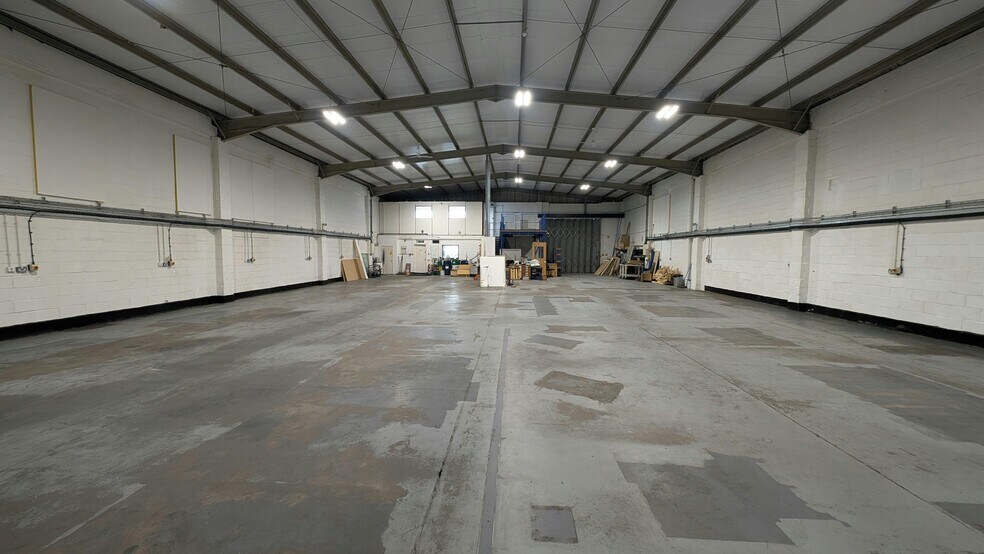 L'unité 13 est un local industriel/entrepôt en milieu de terrasse, construit à la fin des années 1970/début des années 1980. Le bâtiment est conçu avec une structure en cadre d'acier, des élévations en briques et des avant-toits en tôle métallique profilée au-dessus des fenêtres du premier étage, sous un toit récemment installé en tôle profilée isolée Trisomet de 120 mm. L'accès à l'unité se fait par une porte de chargement pliante de 3,87 m de large sur 4,29 m de haut ou par l'entrée pour le personnel. L'espace entrepôt est sans colonnes, avec un bloc bureau/annexe sur deux étages comprenant un espace bureau à aire ouverte au premier étage et une salle de réunion/bureau privé au rez-de-chaussée. De plus, une mezzanine de stockage est attachée au bloc bureau. La cour avant attribuée à l'unité, d'environ 25 m x 18 m, est recouverte de béton.