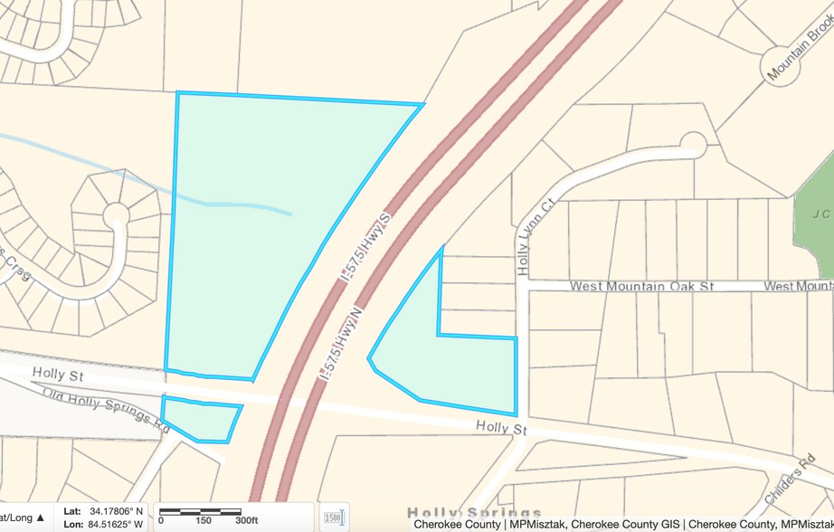 Emplacement privilégié dans la ville de Holly Springs. Frontes terrestres I575 et rue Holly. Bois et roulant. Proche de l'accès nord ou sud de la sortie 14 Holly Springs I575 et du centre-ville de Holly Springs. Accès facile à Bells Ferry Road.