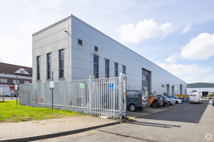 La propriété en question est située à l'angle de Paycocke Road et Honywood Road, au cœur de la zone industrielle de Cranes Farm.