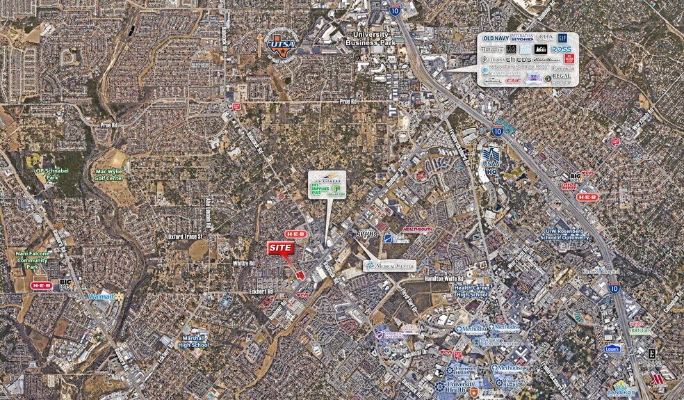 La propriété est une possibilité de location immobilière dans une zone en développement rapide entourée d'un complexe résidentiel et commercial dense. La propriété est zonée C-3R, mais la restriction relative à l'alcool a été supprimée. Coin dur. La propriété est située au coin dur des chemins Huebner et Whitby. La propriété se trouve à quelques minutes de l'IH-10, de la boucle 410 et du chemin Bandera. La propriété se trouve juste à l'extérieur du San Antonio Medical Center. La Cantera, The RIM Shopping Center, UTSA, USAA, Six Flags et plusieurs autres détaillants sont à proximité de la propriété.