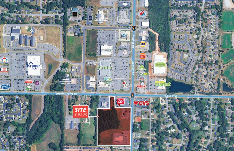 | Type de propriété | Terrain | Rues transversales | Browns Ferry Rd |