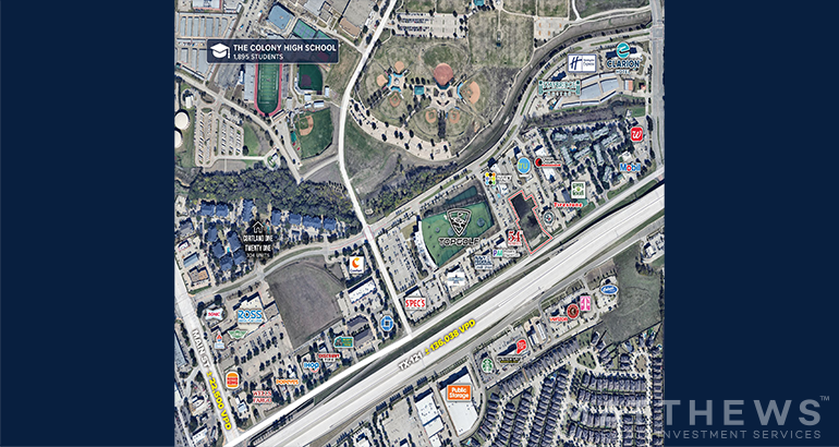 - Façades haut de gamme sur le TX-121 à l'intérieur de la principale artère commerciale de la Colony