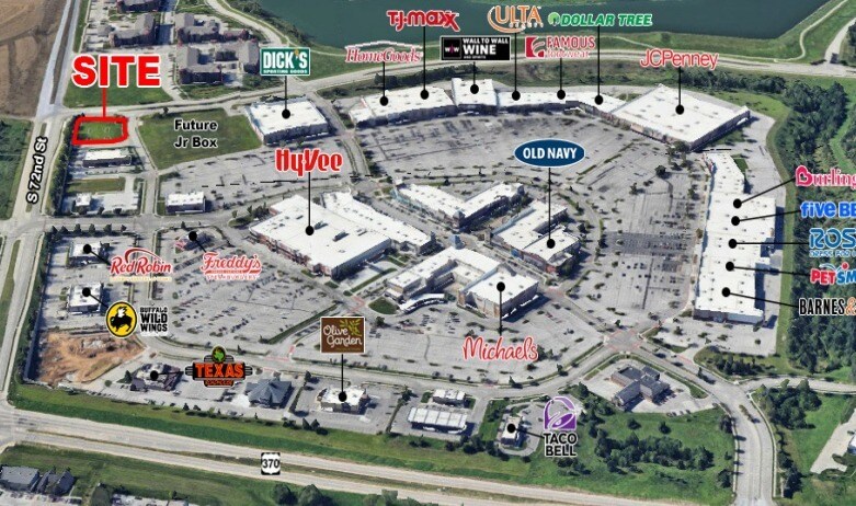 Join Sarpy County’s premier shopping center, Shadow Lake Towne Center, with the last remaining outparcel. Anchor tenants include HyVee, Home Goods, Barnes and Noble, Old Navy, Michael’s, Dick’s Sporting Goods, JC Penney, Ulta, Dollar Tree, PetSmart, TJ Maxx and several more. HyVee is a top 3 visited location in the Omaha Metro according to Placer.ai.