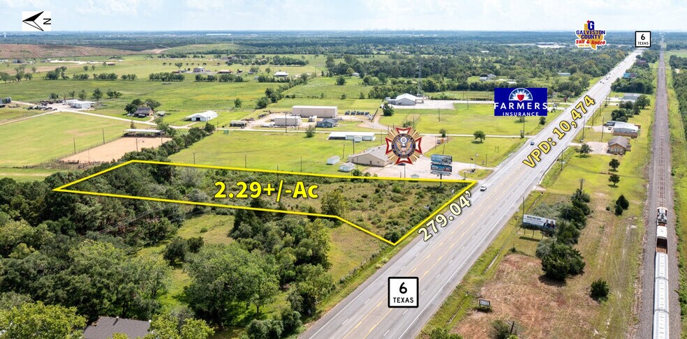 *2.29+Ac Terrain *Excellent façade *Panneau d'affichage sur place (loué) *Poste VFW adjacent 5400 *Situation centrale entre les I-35 et I-45 *Près du parc des foires du comté de Galveston et du parc Jack Brooks *Galveston — 16 min au sud *Aéroport de Hobby — 25,8 milles au nord