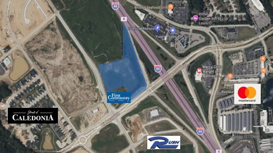 Divisible à environ 1 acre. Adjacent à la toute nouvelle First Community Credit Union. Excellente visibilité sur l'I-64, le boulvd Winghaven et la promenade Caledonia. Site idéal pour le commerce de détail, le bureau ou les services médicaux. Plus de 60 000 véhicules par jour