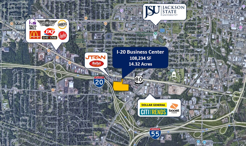 ProVisions, LLC is pleased to present the I-20 Business Center, located at 1651 Kerr Drive in Jackson, Mississippi, is a strategically positioned commercial and industrial asset within a regional commercial and industrial corridor. Situated on 14.32 acres just off Highway 80 West, the property provides immediate access to Interstate 20 and Interstate 55, offering excellent regional and multi-state connectivity.