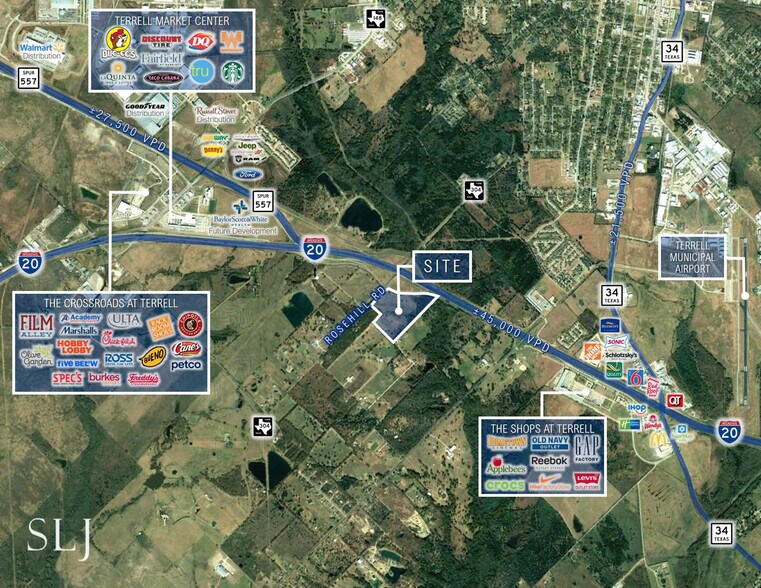 - Situated along Interstate 20, between the Crossroads and Terrell/Terrell Market Center developments and The Shops of Terrell Outlet Mall