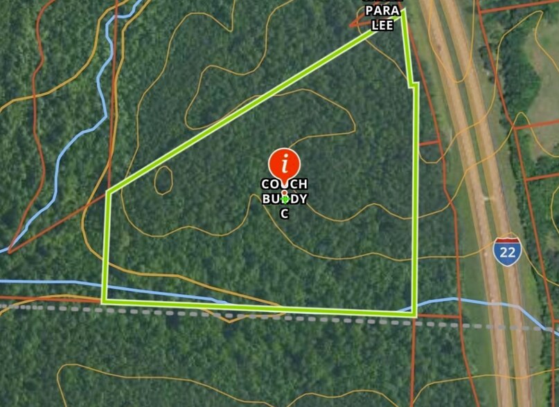 28 +/- acres boisés situés le long de l'autoroute I-22. La propriété est actuellement enclavée.