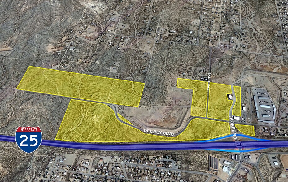 Fantastique occasion d'aménager des parcelles de terrain dans la région en plein essor du sud du Nouveau-Mexique/Las Cruces ainsi que dans l'écosystème Borderplex (Las Cruces/El Paso/Juarez) en expansion constante. Le site se trouve le long de ±4272 pieds de façade de l'I-25. Les futurs plans d'aménagement* visant à relier l'intersection de l'I-25 et du chemin Thorpe au secteur en pleine croissance du ranch Sonoma, du parcours de golf Desert Hawk et de la route 70 offrent la possibilité de faire du site une passerelle d'accès à partir du corridor I-25. Disponible pour le commerce de détail, l'industrie, les bureaux flexibles ou le développement multifamilial.