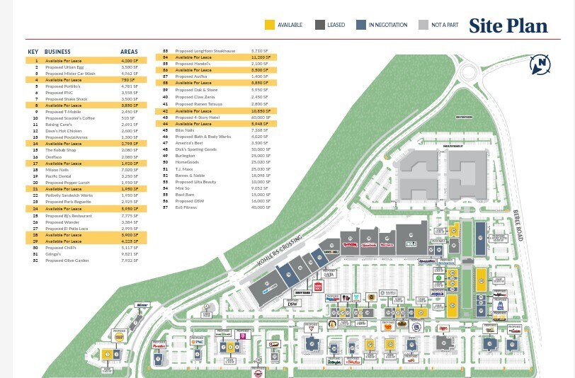 - Les aires de stationnement et les espaces de vente au détail à louer.