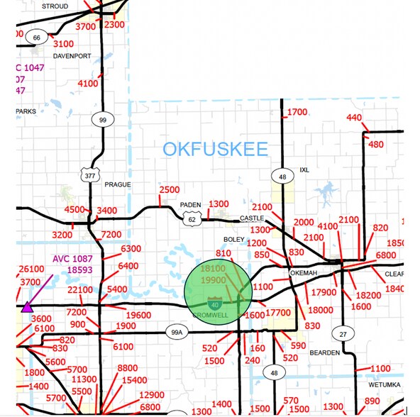 La NWC I-40 et l'autoroute 56 dans le comté de Seminole, en Oklahoma. Parfait pour le C-Store avec carburant sur la façade de l'I-40 de 2 000 pi avec rangement public/parc pour VR, camion ou remorque à l'arrière. Le vendeur est extrêmement motivé et prêt à négocier ! Plus la clôture est rapide, moins le prix est cher !