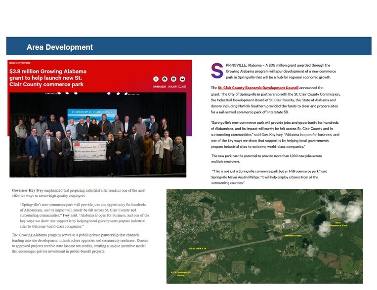 - 2,12 acres - 92 137 pieds carrés - Zonage : B-2 - Quartier des affaires générales - Visibilité de 473 pieds de façade sur l'Interstate I59 ! - Propriété précédemment dégagée - Système d'égout pluvial déjà installé