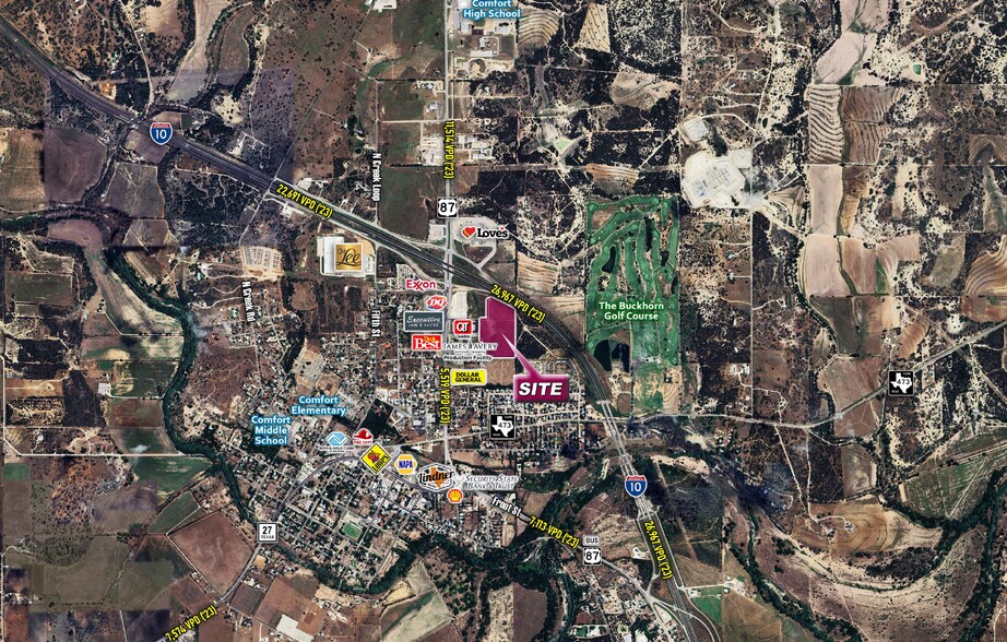 Site de 16,79 acres situé à l'intersection sud-est de l'IH-10 et de la route 87. Adjacent au tout nouveau QuikTrip avec un accès pratique à l'IH-10 et à partir de celui-ci.