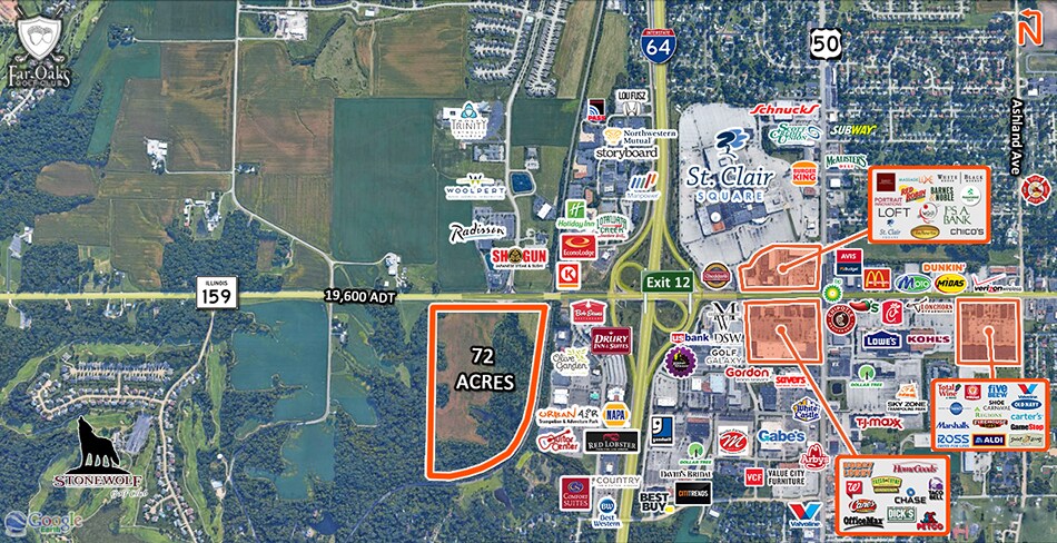 Mixed Use Development Site 72 Acre Site Zoned Commercial and Multi-Family. 1,525' Frontage on IL-159 with Controlled Access. 4-way lighted intersection. Just North of I-64 at Exit 12 and only 15 minutes from Downtown St. Louis. Located in TIF District (June 2015).