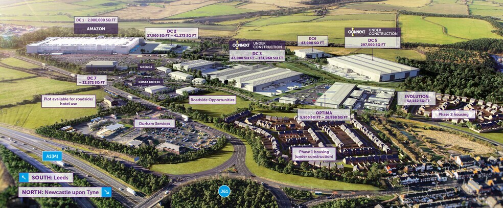 Situé à seulement quatre milles de Durham, à 80 milles au nord de Leeds et à 20 milles au sud de Newcastle, on estime qu'il y aura plus de 50 000 déplacements en véhicules sur le carrefour giratoire J61 (à seulement 200 m du site) chaque jour. De plus, le site se trouve en diagonale face aux services très populaires de Durham, ce qui permettra aux occupants d'accéder aux nombreux visiteurs existants de la région. Integra 61 bénéficie d'un organisme de développement des autorités locales de soutien et de croissance. Le site bénéficiera en outre de 290 nouvelles maisons et emplois dans le cadre du programme plus vaste.