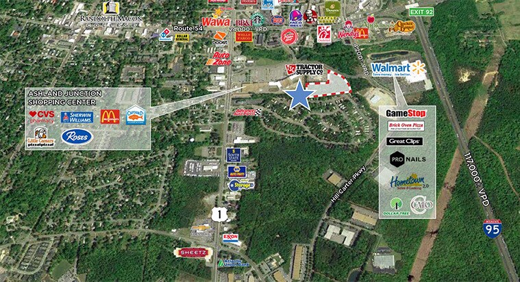 BAIL FONCIER OU POSSIBILITÉ DE CONSTRUCTION SELON LES BESOINS 6,235± Acres Joignez-vous à Food Lion, Tractor Supply et Walmart Route 54 (rue England) à I-95 - 21 000 VPD Route 1 à Junction Drive - 18 000 VPD Communiquer avec les agents pour connaître les prix