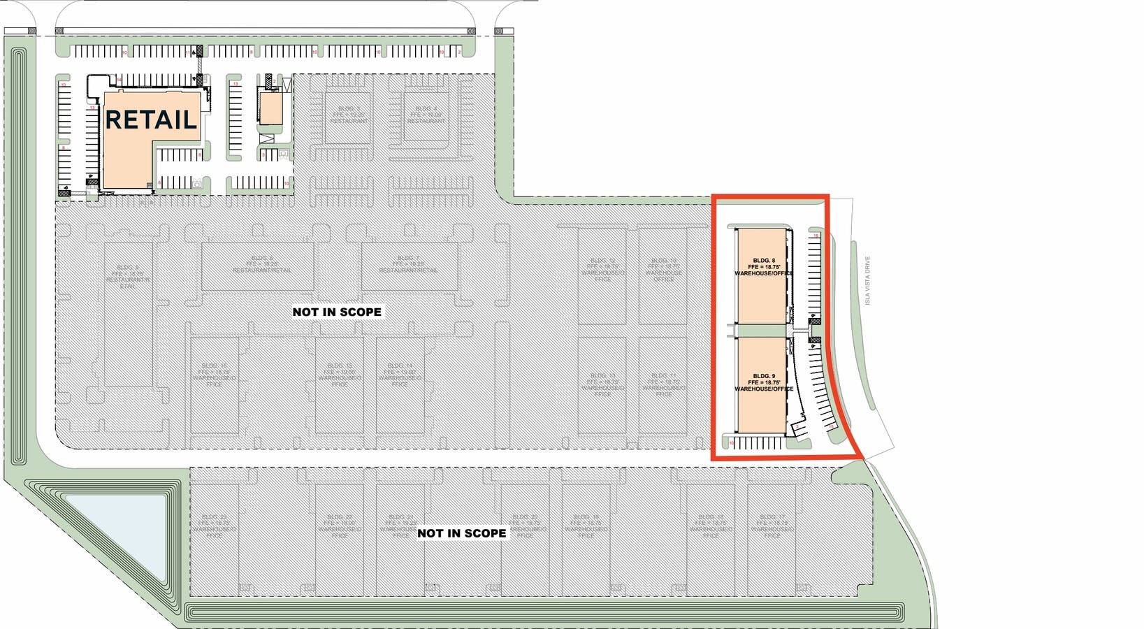 ±10,000 - ±50,000 SF Industrial Warehouses Available Q1 2026 Delivery Spec Office Grade Level Loading 18’ - 22’ Clear Height 10’ x 12’ Overhead Doors Signalized Intersection Multiple Access Points Mixed Use Development by Alexander Grene Development Located at the intersection of E. League City Parkway/SH 96 and Isla Vista Drive, 0.5 miles from Highway 146