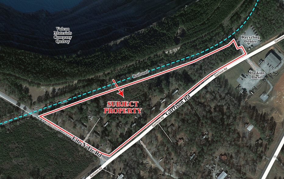 14.39 Parcelle externe d'un acre de terrain zoné industriellement dans le comté de Jones. Zoné M-2. Situé juste à côté de l'autoroute 49, sur Garrison Road, dans le comté de Jones. Situé à 8 milles de Gray et à 10 milles du centre-ville de Macon, qui donne accès aux principales artères d'Atlanta (I-75) et de Savannah (I-16). Les entreprises à proximité comprennent Vulcan Materials Company Postell Quarry, Garrison Road Convenience Recycling Center, Peacock's Auto Salvage et Haskins Diesel.