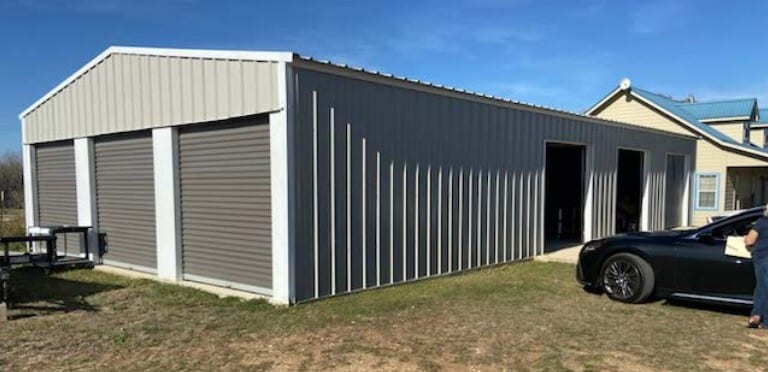 hobby area. The 3,440-square-foot shop building includes four bays, each with a 20’ roll-up door; a separate