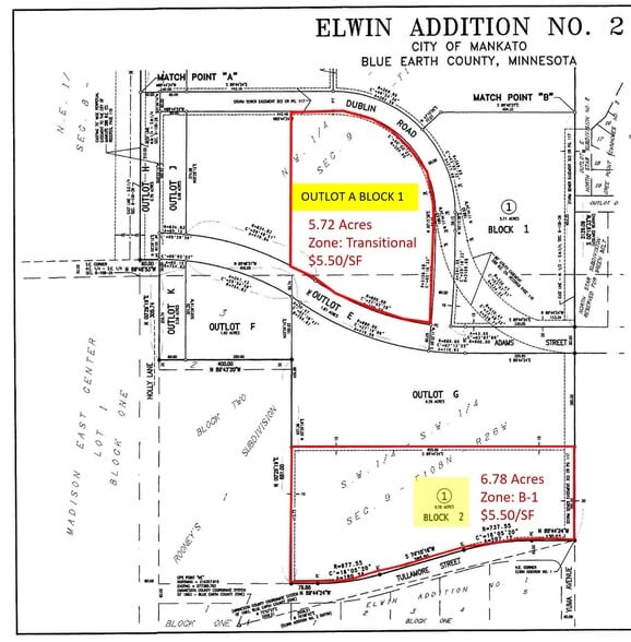 Le lot 1, bloc 2, Elwin Addition no 2 est zoné dans la zone B-1, quartier des affaires communautaires, et est conçu pour offrir un large éventail de développements commerciaux adjacents à des zones résidentielles. Le district accueillera également les usages de bureaux et institutionnels ainsi que l'industrie légère limitée.