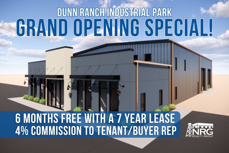 Grand Opening Special! 6 months free with a 7 year lease! 4% Commission to Tenant/Buyer Rep! Explore this 7,500 SF industrial facility located on Lot 11 of Dunn Ranch. Step through the automatic sliding front door into a stunning glass entryway featuring a vaulted ceiling, exposed beams, and elegant can lighting. A chandelier serves as a focal point at the heart of the two-story entry. Premium finishes throughout include 8' solid-core doors and granite countertops reflecting modern craftsmanship. Designed for durability and functionality, the warehouse is 15-ton crane ready and features (4) 14'x16’ bay doors (option to add a 5th bay door), 24' eave height, and 400 Amp 480 volt 3 phase power. An 1,500 SF wash-bay can be added based on the user's needs. Each building showcases a custom monument sign with a 4’x8’ illuminated display area. The 3.18 Acre lot is to be asphalt millings designed for durability while landscaping includes sprinklered green spaces on each side of the parking area with native plants. Fully enclosed by rustic wood post and barbed-wire fencing adding ranch-style charm to the property. Optional covered parking for up to 11 vehicles further enhances both convenience and functionality. Contact John McDaniel for more details on this state-of-the-art service facility in a master planned industrial community.