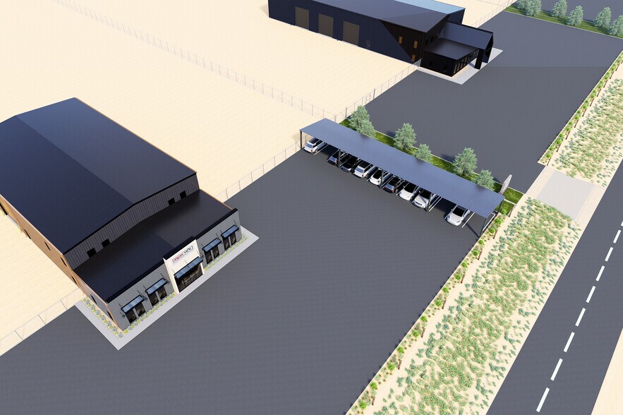 Grand Opening Special! 6 months free with a 7 year lease! (Available through May 2026) Explore this 10,500 SF industrial facility located on Lot 25 of Dunn Ranch. Step through the automatic sliding front door into a stunning glass entryway featuring a vaulted ceiling, exposed beams, and elegant can lighting. A chandelier serves as a focal point at the heart of the two-story entry. Premium finishes throughout include 8' solid-core doors and granite countertops reflecting modern craftsmanship. Designed for durability and functionality, the warehouse is 15-ton crane ready and features (6) 14'x16’ bay doors (option to add 3 additional bays), 24' eave height, and 400 Amp 480 volt 3 phase power. An 1,500 SF wash-bay can be added based on the user's needs. Each building showcases a custom monument sign with a 4’x8’ illuminated display area. The 5.57 Acre lot is to be asphalt millings designed for durability while landscaping includes sprinklered green spaces on each side of the parking area with native plants. Fully enclosed by rustic wood post and barbed-wire fencing adding ranch-style charm to the property. Optional covered parking for up to 11 vehicles further enhances both convenience and functionality. Contact John McDaniel for more details on this state-of-the-art service facility in a master planned industrial community.