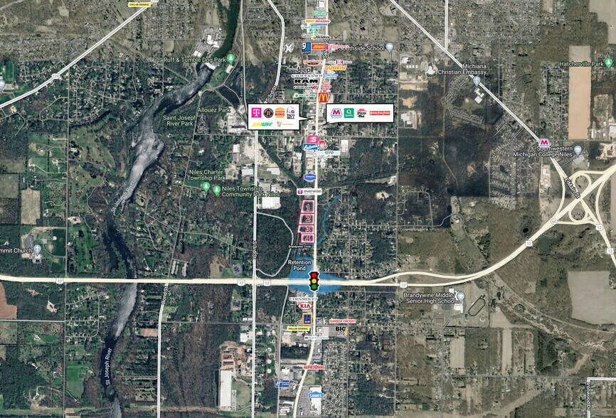 Possibilité de développement commercial. Le site est d'environ 9,2 acres. La propriété sera accessible par deux coupes de trottoir (la deuxième coupe de bordure sera confirmée). GB - Zonage commercial général. Le site a un réseau municipal d'eau et d'égout juste au sud de la succursale de la banque Everwise Credit Union. Il y a au total 18 627 ménages dans un rayon de 5 milles et plus de 203 000 dans un rayon de 10 milles autour de la propriété. Bonne façade sur la M-51. Peut être subdivisé pour le développement de petites parcelles. Situé à l'intersection de la rue US 12 et M-51 (anciennement South 11th), à Niles, au Michigan, du côté ouest de la route, juste au sud de la Édifice de la coopérative de crédit Everwise. Il y a une route d'accès à la propriété Everwise Credit Union pour accéder à cette propriété. La propriété est entourée de détaillants nationaux et d'entreprises commerciales ainsi que de nouveaux aménagements et de nouveaux bassins de rétention et d'un nouveau feu de signalisation à l'intersection des M-51 et US-12.
