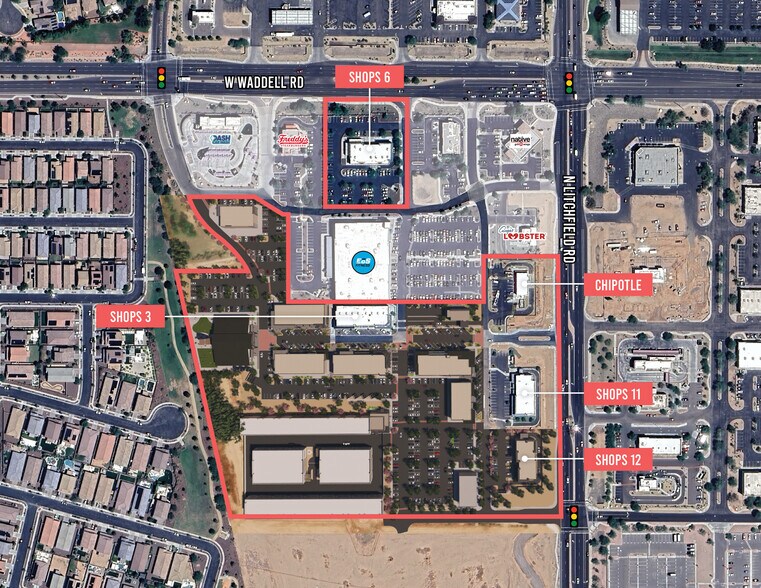 Lee & Associates Arizona is pleased to present Marley Park Square, a mixed-use retail offering at the signalized SWC of Litchfield Road & Waddell Road in Surprise, Arizona. The offering includes ±33,458 SF across four multi-tenant shop buildings plus a single-tenant drive-thru Chipotle pad. In total the project has 12 tenants and is currently 68% occupied, with improvements delivered 2020-2026, along with ±11.83 acres of improved, development-ready land with ±151,420 SF of current buildable area including a storage element