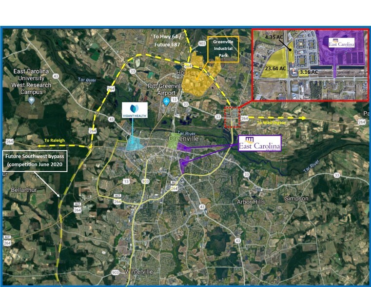 Plus de 30 acres avec visibilité et accès privilégiés sur l'autoroute 264 très fréquentée. Plusieurs options d'achat le long de la route 264 et de l'autoroute MLK — Les colis peuvent être achetés en vrac ou individuellement. Disponible à la vente, BTS ou bail foncier - Faire une offre. Les parcelles sont situées dans une zone d'opportunité.