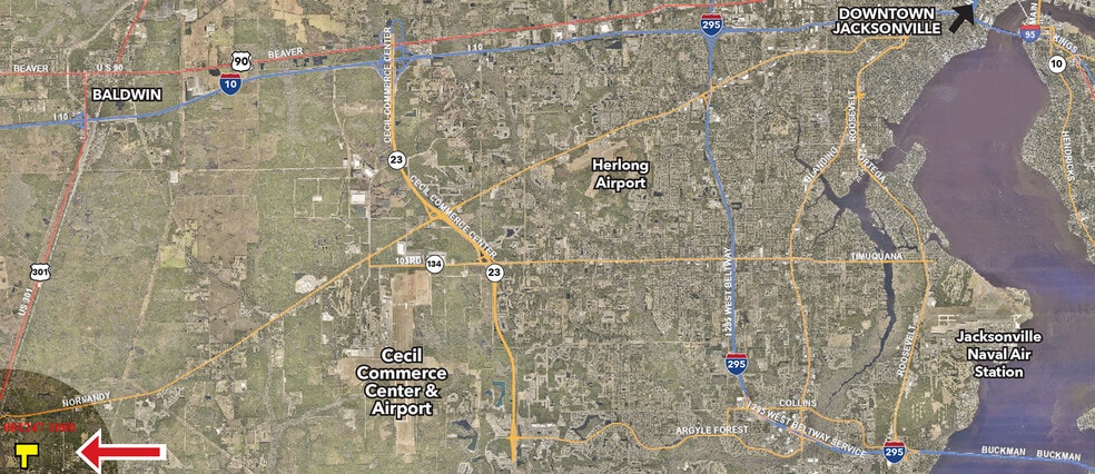 The property is west of the booming Cecil Commerce Center (and airstrip). Home to major corporations like Amazon, Boeing, Northrup-Grumman, FedEx, Bridgestone Tire and more. This area will require increased residential development, as a result.
