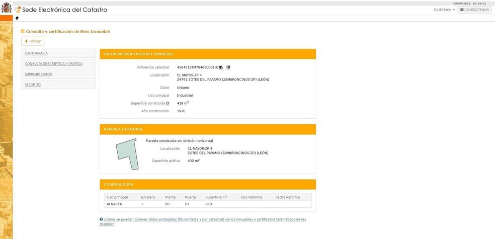 Se ofrece a la venta una nave industrial ubicada en la localidad de Zotes del Páramo, dentro del municipio de Bustillo del Páramo, provincia de León. Esta propiedad cuenta con una superficie total construida de 419 m2 y está compuesta por suelo de hormigón resistente que garantiza durabilidad para diversas actividades industriales. Además, se incluye un terreno urbano adyacente destinado a uso residencial con medida aproximada de 136 m2. La ubicación es estratégica gracias a sus excelentes accesos y conexiones viales que facilitan el transporte y distribución. El entorno donde se sitúa esta nave es predominantemente residencial, lo cual aporta un valor añadido al inmueble debido a su proximidad con viviendas habitadas e infraestructuras necesarias para las operaciones diarias. Referencia catastral: 4364217TM7846S0001WJ; forma parte activa en la comarca agrícola reconocida como el Páramo Leonés.
