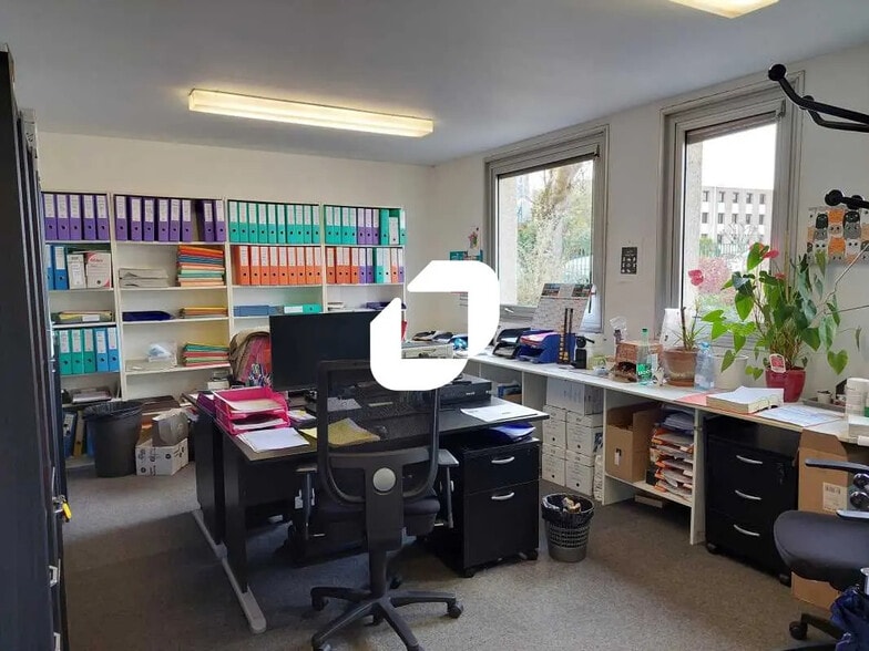 . Bureaux cloisonnés avec moquette, faux-plafonds