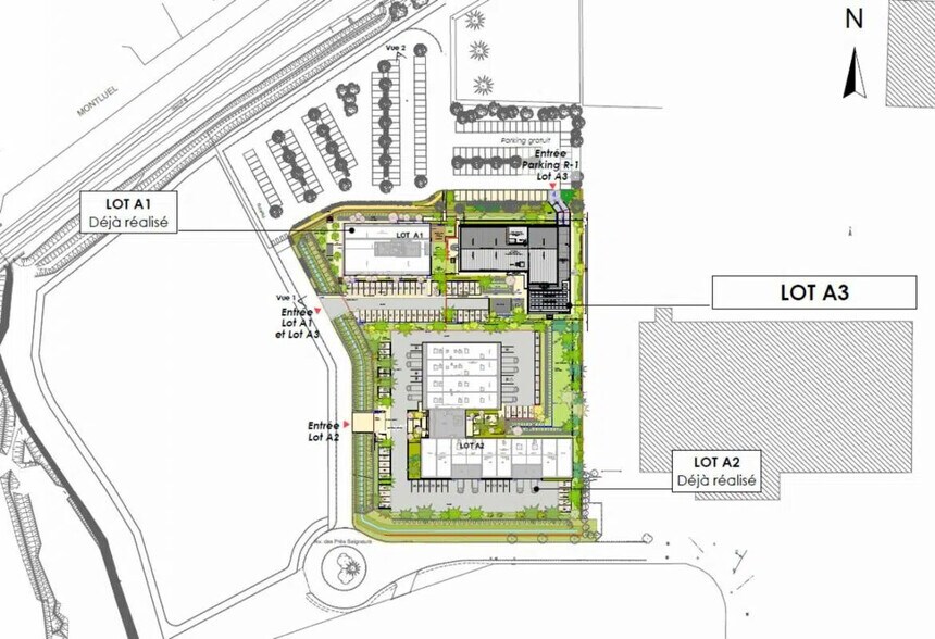 L’immeuble se situe dans la ZAC des Prés Seigneurs, un quartier d’affaires bien établi à Montluel, apprécié pour sa facilité d’accès et sa proximité immédiate des transports. La gare est accessible en quelques minutes de marche, permettant de rejoindre rapidement Lyon et les communes environnantes. Les liaisons routières assurent une connexion efficace avec les grands axes, tandis que la ligne de bus desservant Lyon et Bourg en Bresse se trouve à courte distance. L’environnement propose également plusieurs commerces, services, restaurants et établissements du quotidien accessibles à pied. Le bâtiment bénéficie d’une architecture récente et de prestations qualitatives, incluant une fibre optique mutualisée, un contrôle d’accès et des dispositifs de sécurité adaptés à un usage professionnel. Les parties communes sont soignées et accueillantes, avec des finitions modernes et une accessibilité totale pour les personnes à mobilité réduite. L’immeuble met à disposition des stationnements extérieurs et en sous-sol, ainsi qu’un abri à vélos. Les plateaux en rez-de-chaussée répondent aux normes ERP 5, sous réserve de validation définitive. L’ensemble du site offre un environnement professionnel attractif et fonctionnel, adapté aux besoins d’entreprises recherchant un cadre moderne, performant et déjà opérationnel.