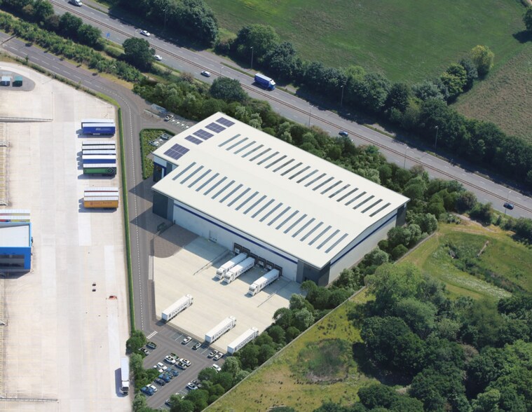 This Grade A unit is equipped with six loading dock doors, three level-access doors, an 11-metre clear height, 50 kN/m2 floor loading, FM2 flooring, and up to 500KVA power supply. Outside, it features up to 55-metre yard depth, 10 HGV parking spaces, 65 car parking spaces, and 14 EV charging points.