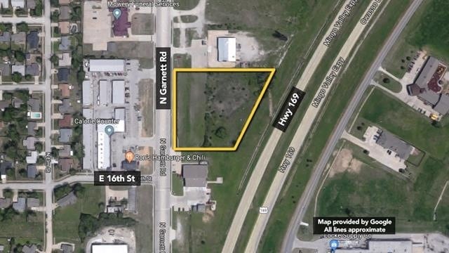 This ±2.73-acre development site offers a rare opportunity along N. Garnett Road in Owasso, Oklahoma, one of the region’s most active commercial corridors. Positioned adjacent to Highway 169, the property benefits from exceptional visibility and access, with traffic counts exceeding 83,000 vehicles per day. The site is zoned Commercial General (CG) with a US 169 Overlay, providing flexibility for a wide range of retail, service, and commercial uses.