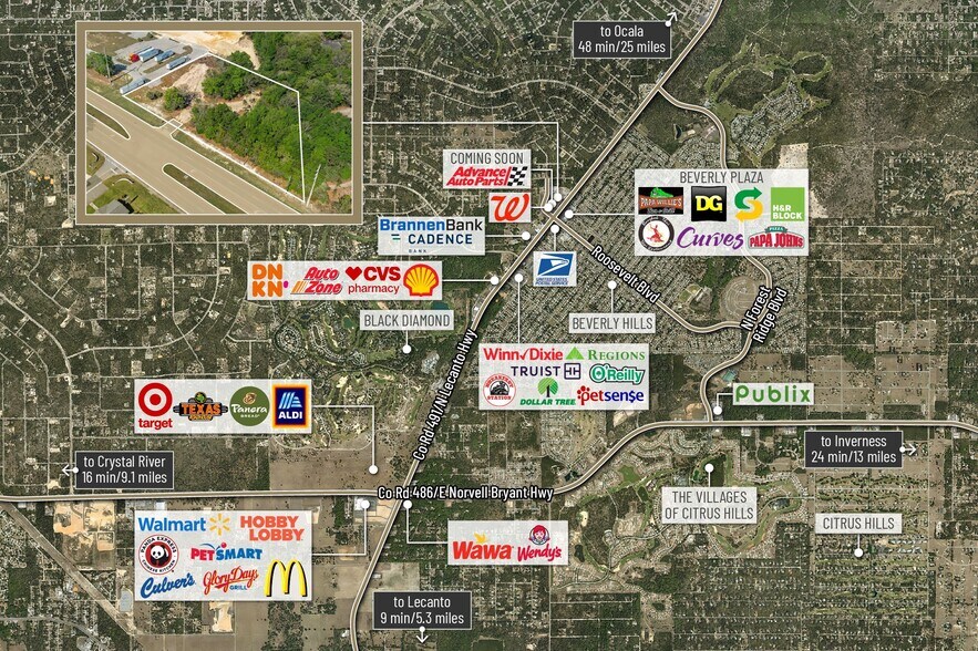 Situé au cœur du corridor de croissance du comté de Citrus, le lot 11 est une parcelle située dans le nouveau Golden Gate à Beverly Hills, en Floride. Ce site de 1,94 acre est zoné pour une variété d'utilisations commerciales, y compris les restaurants à service rapide (RQR) avec chauffe-thru, les services automobiles, le commerce de détail général et les bureaux médicaux ou professionnels. Il fait partie d'un développement florissant aux côtés d'entreprises établies telles que Walgreens, Advance Auto Parts et le nouveau Pizza Hut avec drive-thru.