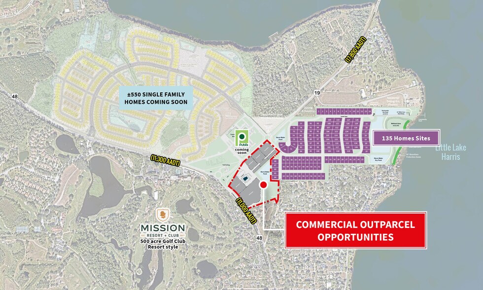 ±89 acres de développement à usage mixte à Howey-In-The-Hills, FL, situé en face d'un nouveau projet Publix approuvé.