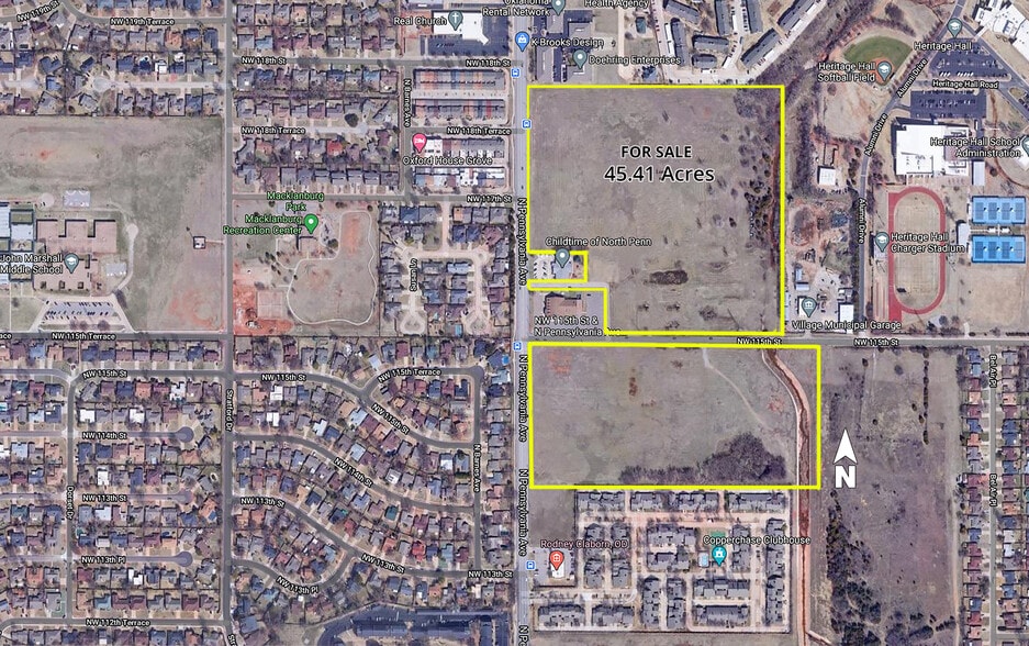 Cette grande parcelle de terrain se compose de 45,41 acres au coin N/E et S/E de l'avenue North Pennsylvania et de la 115e rue NW offrant des terrains commerciaux à usage mixte à des fins d'aménagement. Situé à 1 mille au sud du ruisseau Chisolm Eau et égout adjacents au site Possibilités de développement de la vente au détail Possibilité de développement multifamilial dans la partie est Prix de base 151 949$ l'acre La propriété peut être divisée sous réserve de l'approbation du Vendeur* Les prix peuvent varier selon l'emplacement et la taille de la parcelle achetée