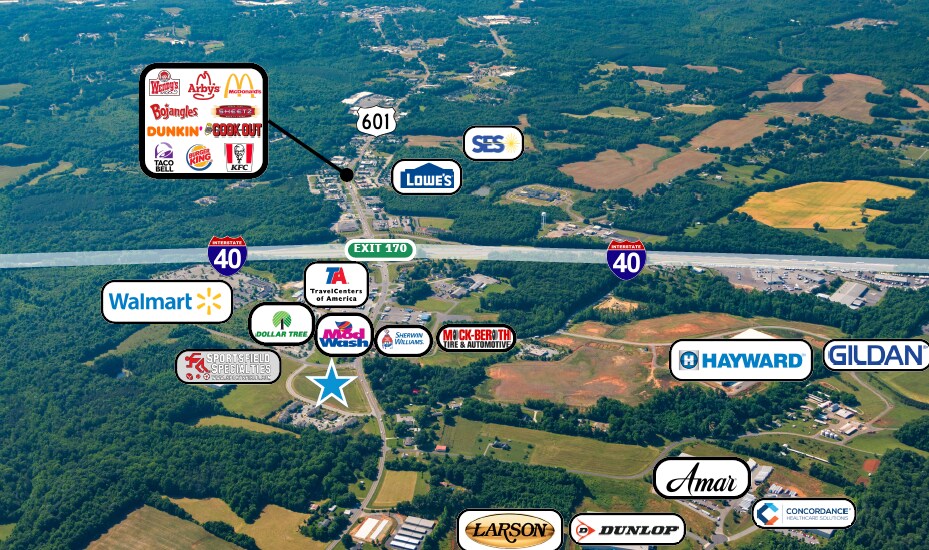 This ±6.72-acre retail development site is zoned Highway Commercial. Located along Hwy 601 with an AADT of 17,500, the property offers excellent visibility and traffic flow. Positioned less than one mile from I-40 with convenient access to I-77, Statesville, and Winston-Salem.