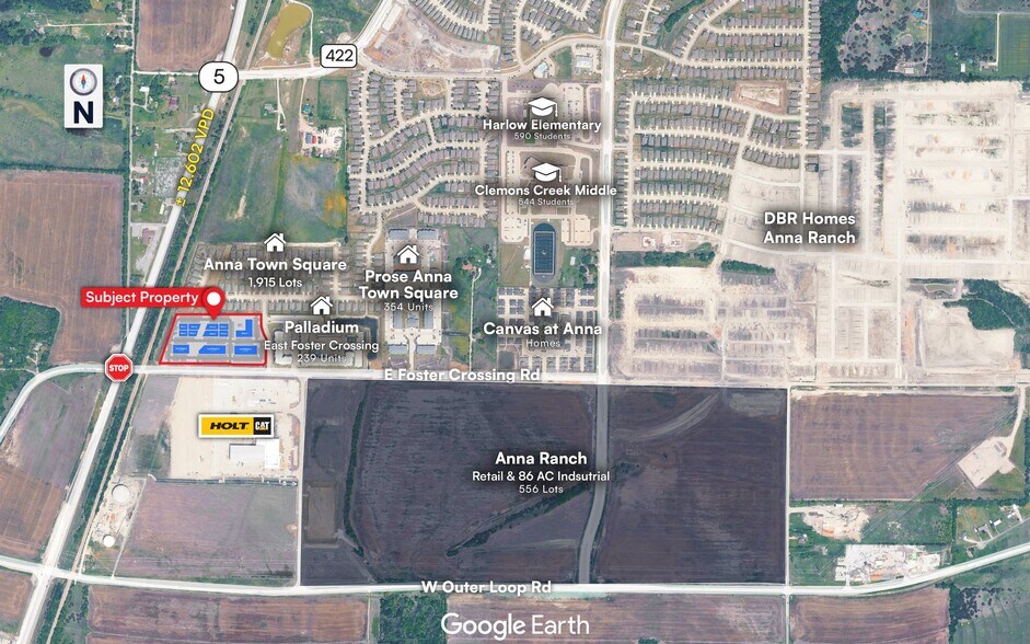 ? Marché en forte croissance : Situé dans la cinquième ville à la croissance la plus rapide aux États-Unis, avec une expansion résidentielle et commerciale soutenue ? Façade stratégique sur l'autoroute 5 : Excellente visibilité et accès le long d'une route artérielle est-ouest clé ; connectivité directe à l'US-75 ? Corridor commercial et de détail : Entouré de développements de détail, médicaux et orientés vers les services, actifs et planifiés ; Positionnement idéal pour le commerce de quartier, la restauration rapide, les services médicaux, automobiles ou autres ? Forte croissance des toits : Base résidentielle dense et en expansion avec plusieurs communautés planifiées à proximité ? Démographie favorable : Croissance rapide de la population, pourcentage élevé de familles et augmentation des revenus des ménages ? Municipalité favorable aux affaires : La ville d'Anna est connue pour sa posture pro-développement ; Investissements continus dans les infrastructures soutenant la croissance commerciale ? Zonage : PD-C (Sous-zonage : C-2) Tableau des utilisations permises : https://ecode360.com/43408113#43408113