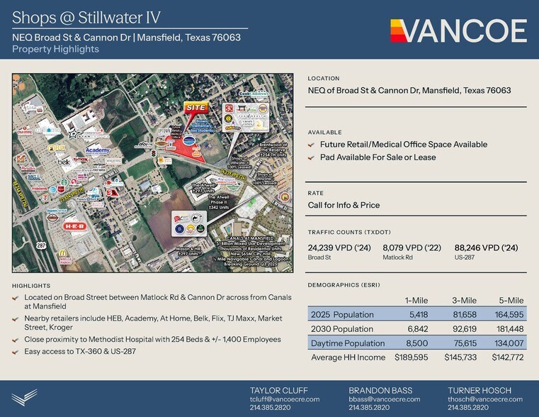 Shops at Stillwater IV NEQ of Broad St & Cannon Dr 1 500–8 000 pi² d'espace disponible • Commerce de détail • 4 étoiles • Mansfield, TX 76063
