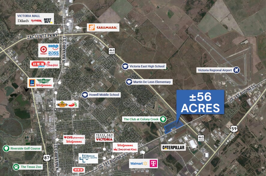 • L'économie de Victoria est concentrée dans le secteur manufacturier, avec des grands noms tels que Formosa Plastics, The Inteplast Group, INVISTA, DOW-Seadrift Operations et Caterpillar, Inc., qui ont établi leurs activités dans la région. • Accueille le Victoria College, classé #12 parmi les meilleurs collèges communautaires au Texas (Niche.com). • Emplacement stratégique entre la SH 463 et l'US 59. • Les autoroutes US 77 et US 87 se trouvent à moins de 5 miles du site.
