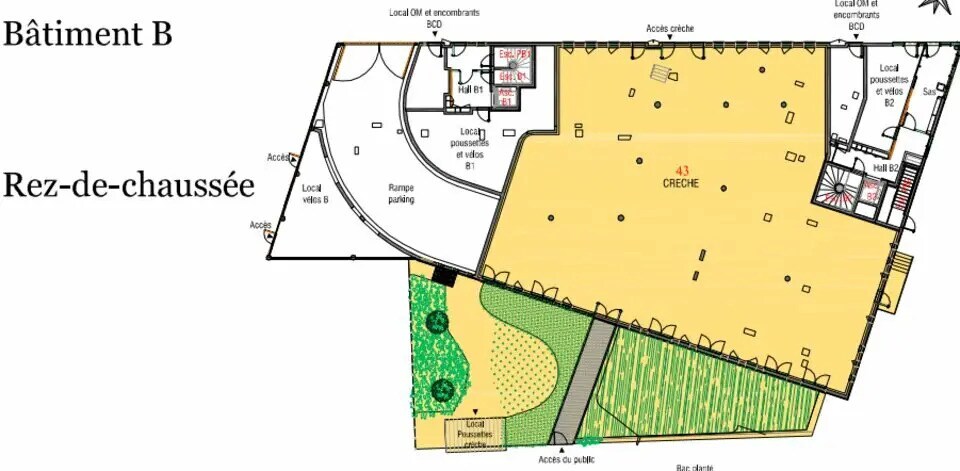 LAMOTTE ENTREPRISES & COMMERCES vous propose, au sein de l'ensemble immobilier "LA CANOPEE" (composée de 108 appartements répartis sur 4 bâtiments), un local d'activité de 600 m² situé au rez-de-chaussée du bâtiment B (local "crèche" du plan).