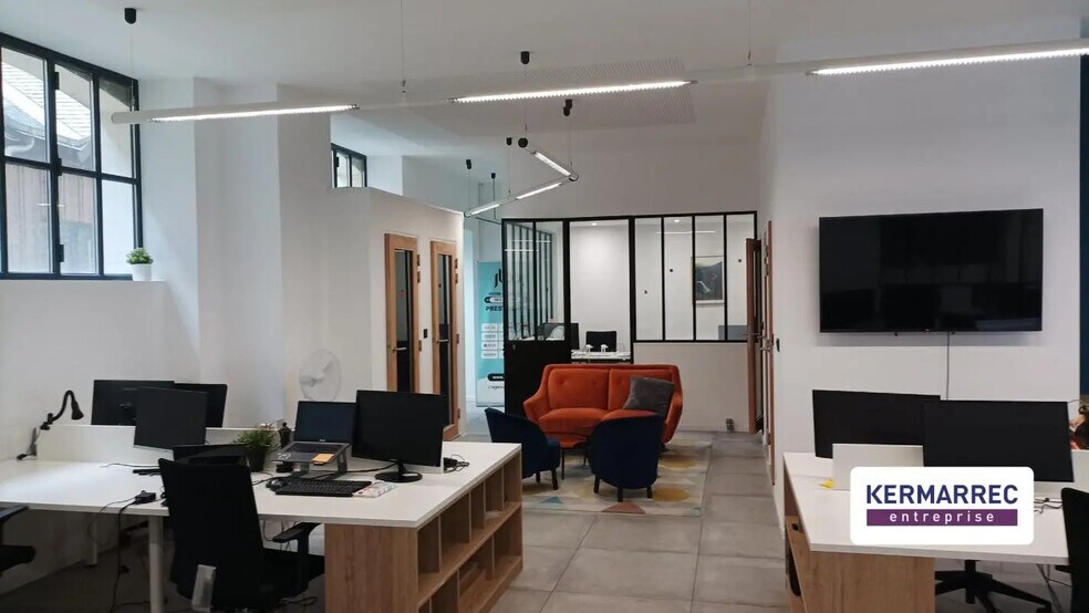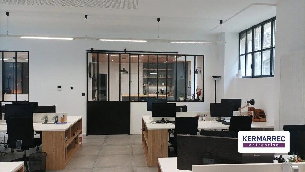 KERMARREC Entreprise vous propose à NANTES, cours des 50 otages, au pied du tramway, un très beau RDC de bureaux d'environ 175m² (Carrez à confirmer) A Vendre. Situé au sein d'une copropriété mixte (bureaux et habitations), le lieu a été entièrement refait, du sol au plafond, en 2021 avec l'expertise d'un architecte. Il bénéficie de plusieurs accès côté cour et côté rue (accessibilité PMR possible). A l'intérieur, les beaux volumes lumineux, design et modernes offrent un cadre de travail haut de gamme. On y trouve, entre autres, un grand open space, bureaux fermés, salle de réunion, 5 phone-box, grande cuisine aménagée. Sanitaire PMR et douche, Local à vélos fermé. Localisation idéale au pied du tramway L2, des parkings publics, restaurants, commerces et service. Gare TGV à 15min en transport. Honoraires inclus de 7% HT à la charge de l'acquéreur. Prix hors honoraires 700 000 €. DPE vierge. Les informations sur les risques auxquels ce bien est exposé sont disponibles sur le site Géorisques : georisques.gouv.fr.