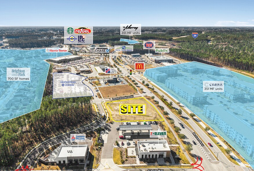 1,274 acres disponibles pour bail foncier ou BTS Le site desservira la collectivité de 5 000 acres de Nexton, qui comprend 10 000 maisons unifamiliales, 2 000 unités multifamiliales et 6 millions de pi2 d'espaces commerciaux Excellente visibilité sur Nexton Pkwy Stratégiquement situé dans un corridor en croissance rapide à proximité de l'I-26 Feux de circulation prévus à Scholar Way et Nexton Pkwy Harris Teeter et Publix prévus à proximité du site