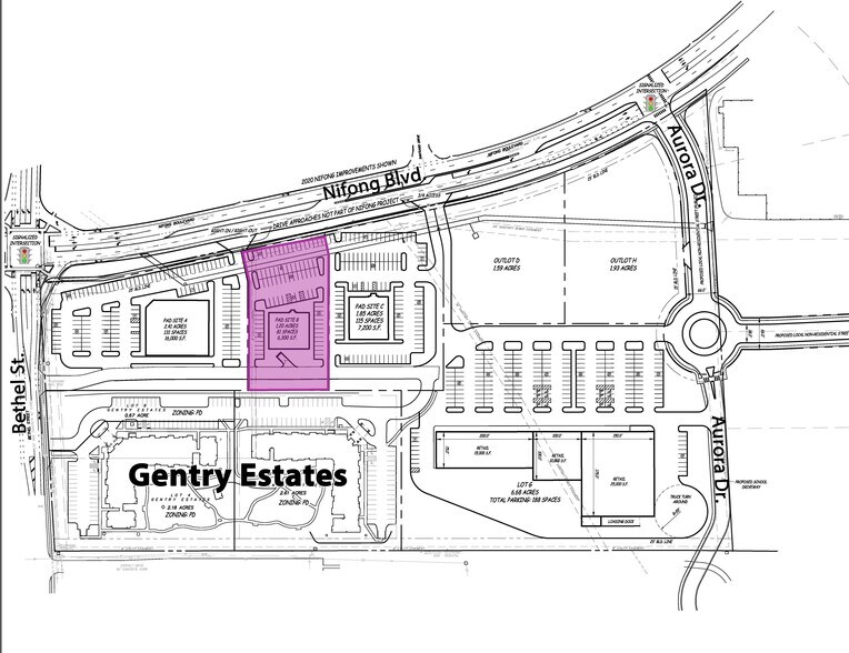 - 2 points d'accès depuis le boul. Nifong et 1 point d'accès depuis Bethel St.
