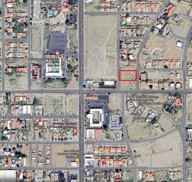Niché entre le chemin Ocotillo et l'avenue Sunset, légèrement surélevé et situé dans l'aquifère minéral naturel de l'une des destinations les plus axées sur les spas du sud de la Californie, avec ses magnifiques paysages et ses eaux naturelles curatives. Le zonage actuel offre au promoteur de nombreuses utilisations ou achète et détient pour investissement.